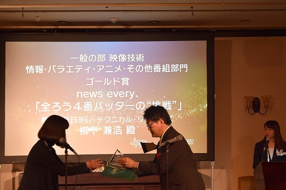 「情報・バラエティ・アニメ・その他放送番組部門」にてCV運用部 柳下兼浩 編集の、news every.『全ろう4番バッターの"挑戦"』(2016年8月30日放送)がゴールド賞を受賞。また、「TVドキュメンタリー部門」にて、ポスプロ技術部 馬場勝 編集の、NHK BS1『本当にあった幸せ物語「もう一度、会いたい~亡き夫の人生を追って~」』がシルバー賞を受賞しました。