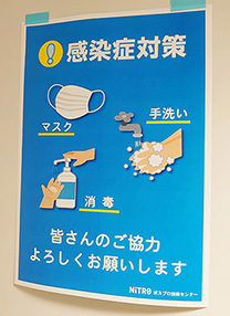 新型コロナウイルスの感染経路としては、物を介した接触感染が疑われています。そこでNiTRoでは接触感染の可能性があるドアノブ等に、ウイルスの感染力を抑える「接触感染対策テープ」を貼っています。