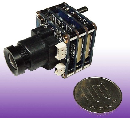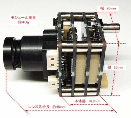 ① モジュール単体では、大きさは100円玉くらい。重さも約40gと軽量。