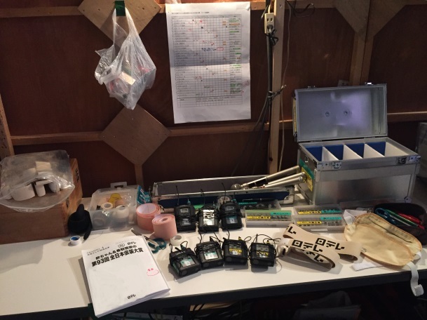 本番は忍者(黒子)に扮装しての業務です。冬の寒さは堪えます・・・