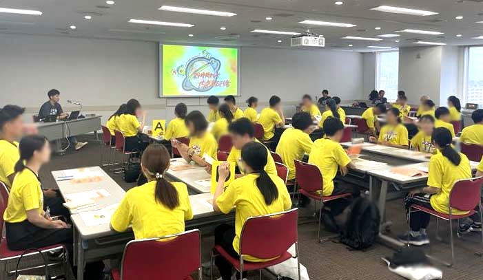 会場では、内定者全員が24時間テレビの「黄色いTシャツ」を着用し研修を受けます。
