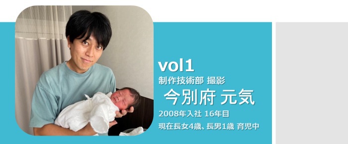私はトータルで約2か月の育休でしたが、カメラマンの先輩で1年間育休を取得している方もいます。私が育休を取得した10月中旬は1年を通してもかなり多忙な時期でしたが、上司のシフト調整、同僚の助けもあり育児に専念することができました。NiTRoには、年間を通して大型番組の業務がありますが、事前に会社に相談すれば長期休暇も取得可能です。上司にも気兼ねなく相談でき真摯に向き合ってくれるので、風通しもいい会社だと思います!