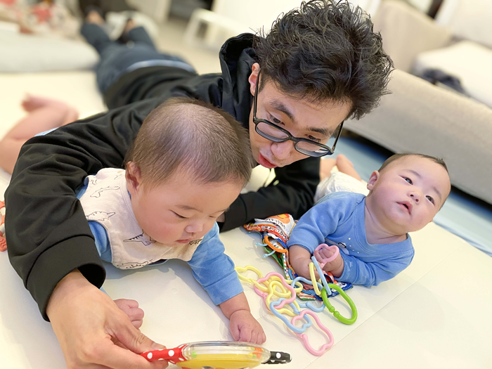 特に、0歳8ヶ月まで夜通し寝なくて、交互に起きる双子のお世話は大変でしたが、妻とはシフト制で対応しました。十分な睡眠を取ることが、円滑なお世話につながると実感しましたね。大変なことも多かったですが、子どもたちの成長を一緒に見守ることができ、育休を取得して本当に良かったと思います!