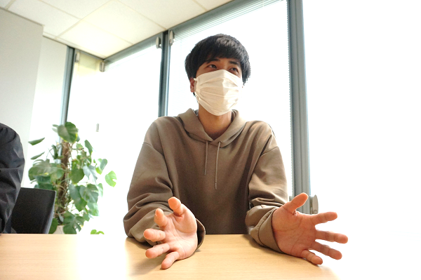僕は、映像の編集を個人的にやってたことと、大学の授業で番組を制作する機会があって、本当にその授業が楽しかった。NiTRoのインターンシップに参加し、幅広い業務の体験をして、いろんな質問もして、それを踏まえて、「NiTRoいいな」と思ってそのまま志望させていただきました。あ!志望させていただきましたって、面接みたいに言っちゃった(笑)