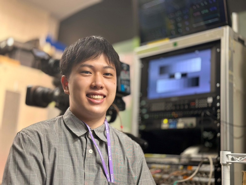 制作技術部でビデオエンジニア(VE)という仕事をしています。中継では電波の受信を担当したり、スタジオではCCD収録と呼ばれる小型カメラでの撮影でアシスタントをしながら勉強しています。取材や中継で使用する機材のレンタル発注をしたり、ENGカメラのチェックをしたりする業務もあります。