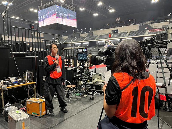 私は今、中継や取材の音声をしています。中継では主にサッカー、野球、バスケ、ボクシングなどスポーツの現場に行ったり、音楽ライブなどのイベントの現場に行ったりしています。会場にケーブルを引いてマイクをセットしたり、制作の人がコミュニケーションをとるための端末を準備したりしています。