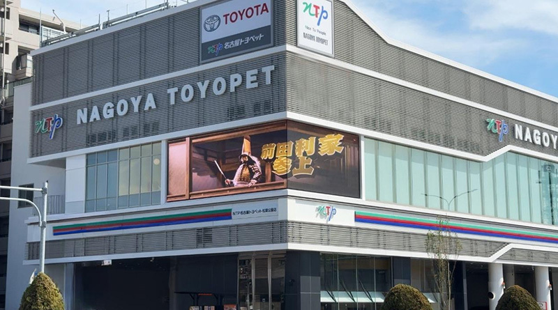 今回私たちは、NTP名古屋トヨペット松葉公園店社屋のLEDモニターに表示される交通安全スローガン用の映像を制作しました。