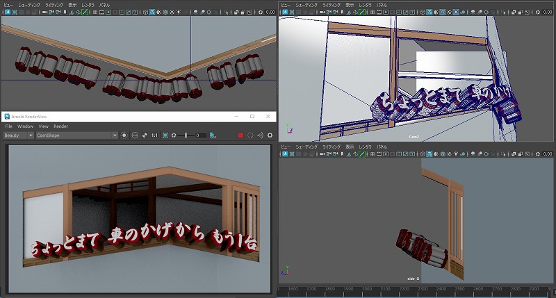 交通安全スローガンは読み易さを損なわないように、かつCG空間から外に出て立体的に見える角度と動きを細かい修正を繰り返し、調整を行っています。