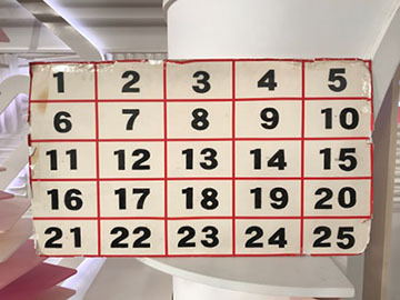 カメラマンの研修で最初にやったことは、1から25の数字が書かれたボードの各数字にズームインする練習です。どの数字にもスムーズにズームをできるようにすることで、基本的なズームの技術を身につけることができます。またズームのスピードを変えることでリモートコントローラーの感覚を掴めるようになります。私はまだまだズームに不安があるので、この練習は今も常にやるようにしています。