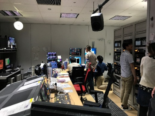 あまり広くないBSマスターの中には多くの放送機器がありますが、その中でも基本的には監視卓の前にある大きなメインモニターをみて異常がないかを監視します。