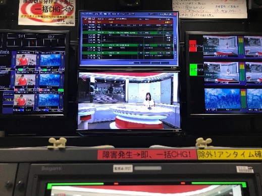 マスターでの最大のミッションは、「番組やCMを正常に送出すること」です。その放送進行表の通りに放送されているか、番組やCMにノイズが乗っていないか、など厳しく監視を行います。監視以外には、プロ野球など放送の終了時間が決まっていない番組の延長処理や、急な番組やCMの放送内容の変更なども行います。また速報の送出もマスターの重要なお仕事です。私が業務を行っているBS日本は全国放送で、関東ローカルである地上波よりも緊急性の高い有事に関する速報を送出する可能性が多くありますが、放送の最終段階であるマスターで問題があった場合、放送事故に直結してしまいます。