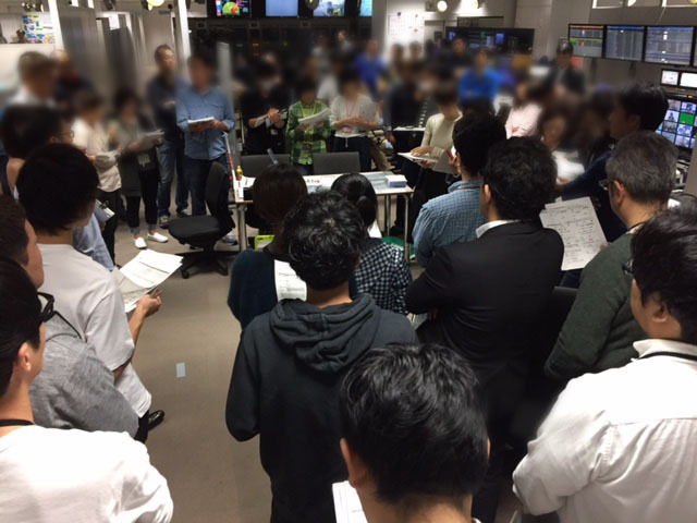 まず放送開始前に全体ミーティングが行われました。