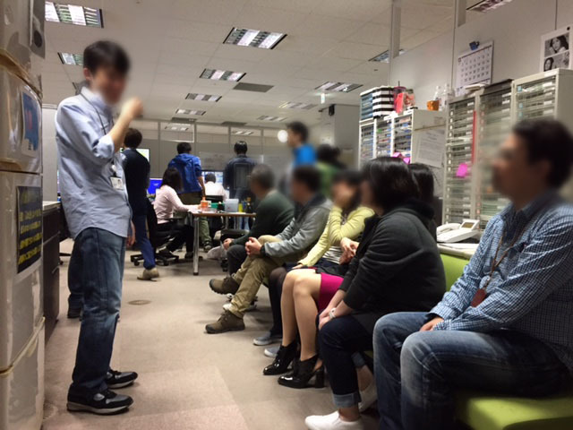 緊張感漂う全体ミーティング。どこを見渡してもとにかく人!人!人!