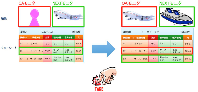 その際、映像・音声機器なども[TAKE]のタイミングでプレイ制御されます。