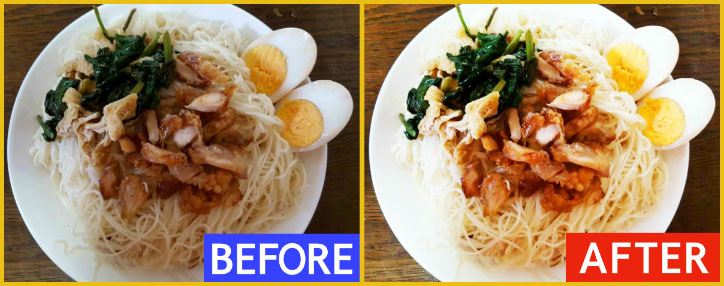 具体的には、画像の色調整をするのがポイントです。下の2枚の写真を見ていただくとお分かりのように、僕が加工した画像の方がおいしそうに見えますよね? これが編集の力です。