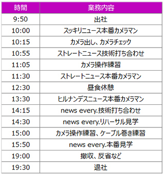 主な担当番組は、Oha!4、news every.、news zero、更にスッキリやヒルナンデス!などの報道フロアから行うニュース番組です。