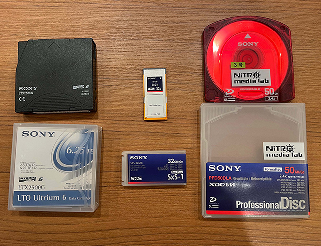 例えば、記録メディアとしてはSDカードやハードディスクなどはもちろんですが、ほかにもXDCAMやiVDR、LTO、SxSなど、一般ではあまり見かけないものも扱います。