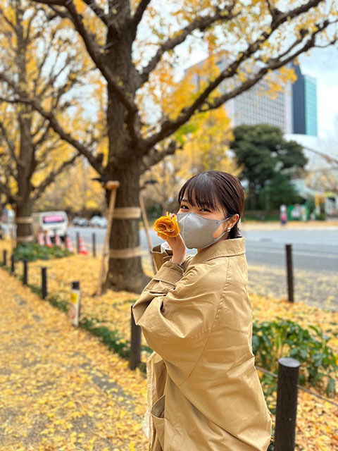 筆者(夜勤明けに同期といちょう並木を散歩しました)