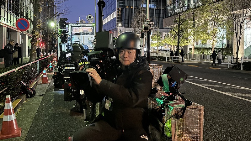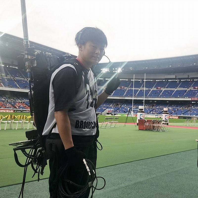 私は専門学校や映像系の学校に通っていたというわけではなく、就職活動を機に、この業界に飛び込みました。入社してからは研修期間を経て制作技術部に配属され、すぐに24時間テレビ・マラソン並走カメラのアシスタントにつかせていただきました。その後はボクシング、野球、ゴルフといった様々な中継現場や取材ロケを担当。夏から秋にかけてラグビー日本代表戦中継、つい先日は箱根駅伝の移動車(バイク)のアシスタントとしての業務を終えたところです。