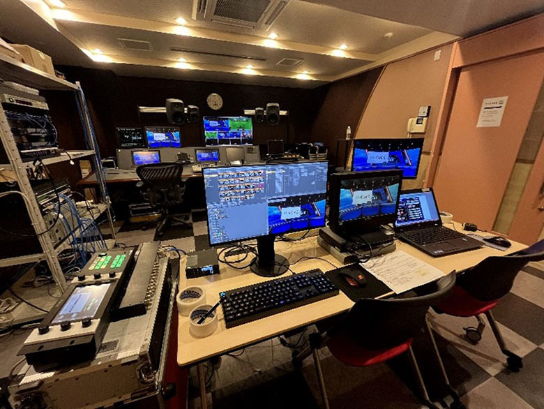 また、バーチャル連動カメラのほかに固定カメラ2台を追加し、1ショット用に作成した背景と合成することで、合計3台のカメラで配信することが可能になりました。