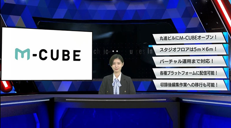M-CUBEはコンパクトなスタジオですが、バーチャルスタジオを活用することで、実際の部屋の大きさを意識させない、より充実した配信コンテンツの制作が可能になります。