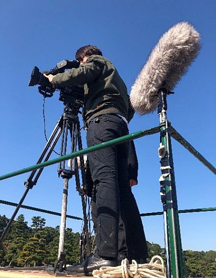 私は皇居前広場の中継ポイントでアナウンサーの実況の声を収音しました。実況リレー沿道1番目のミキサーを担当し、生中継でMIXすることは手が震えるほど緊張しました。しかしながら、令和の歴史のひとつに刻む中継にやりがいや高揚感をとても感じました。