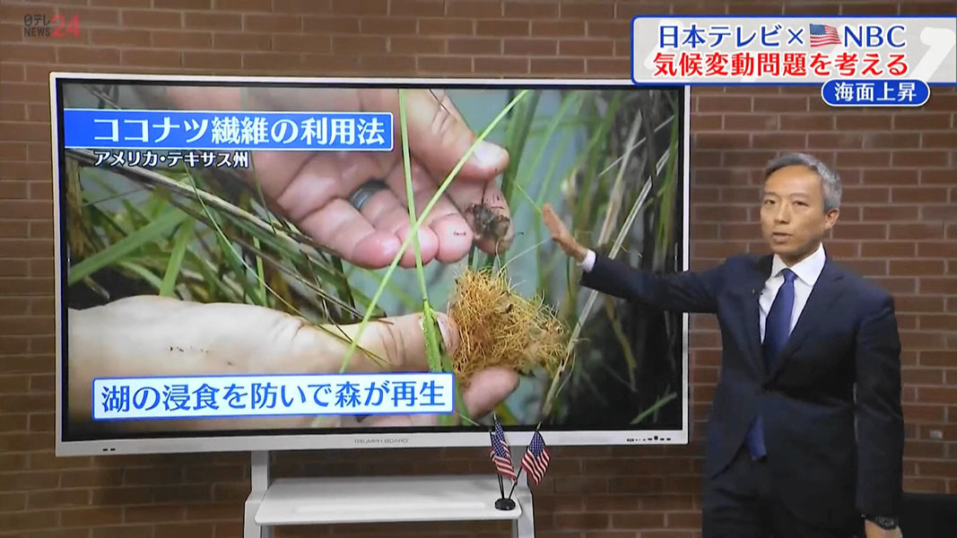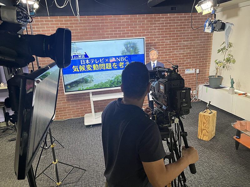 ニューヨーク⽀局には、タッチパネル式のホワイトボードがあり、それを使って、スタジオ解説のような撮影を⾏うことができ、先⽇、そのボードを使って、⽇テレニュース24の番組内で、ニューヨークから東京に向けて記者解説の中継を⾏いました。