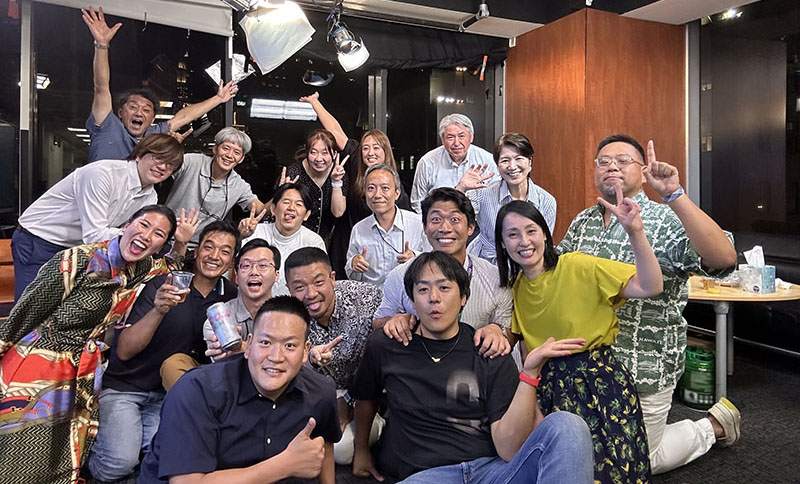 O.A.上は、まるでスタジオで解説しているように⾒えますが、実際は⽀局の⼀⾓から中継していました。限られた⼈員・機材の中で、⼯夫をしてクオリティの⾼い映像を届けています。