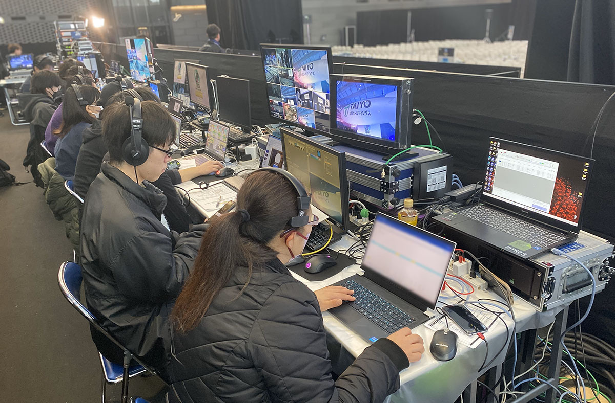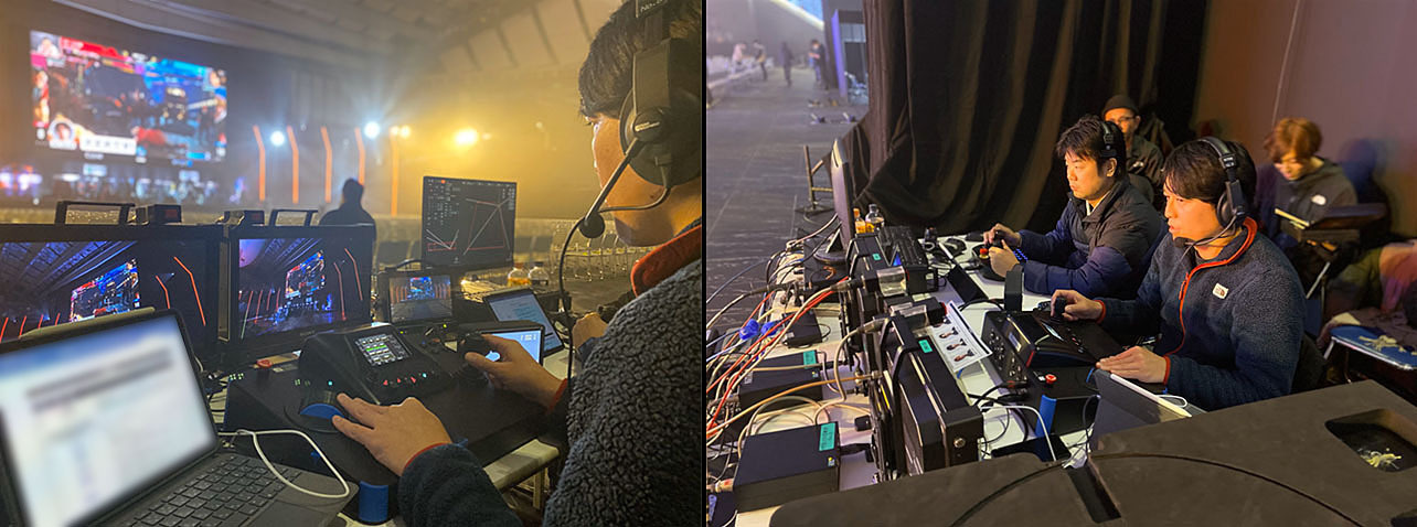 映像表現としては、EagleEyeを客席上空に位置し、奥行き感のあるカメラワークをしましたが、選手入場時や対戦時でのARを絡めたカットでは効果的な表現ができたのではないかと思います。本来であれば動きのバリエーションをもう何パターンが表現できた方がよかったかなと思っていますが、それは次回の課題とします。