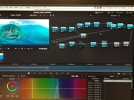 この業務は、ある施設に設置された「360度VR」用の水中映像をグレーディングする案件でした。
