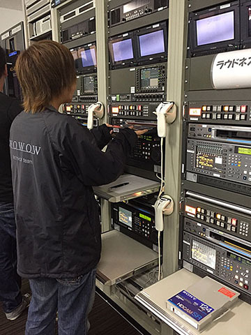 WOWOWは、2011年10月に3チャンネルフルハイビジョン化を行うとともに、テープでの送出からサーバーでの送出に切り替わりました。これにともない、今まで放送用テープをせっせとマスターに搬入していた"放送準備"業務がなくなり、代わりに放送用テープをサーバーにせっせと取り込む "ファイリング業務"がスタートしました。