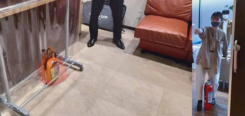 「消火器による初期消火の限界は、炎が天井に達するまでとされ、火の勢いが衰えない場合や、